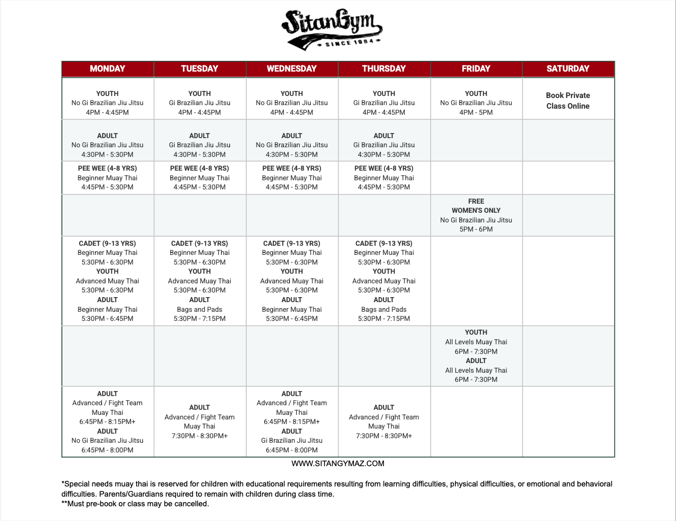 4:00pm – 4:45pm | Youth BJJ Muaythai |