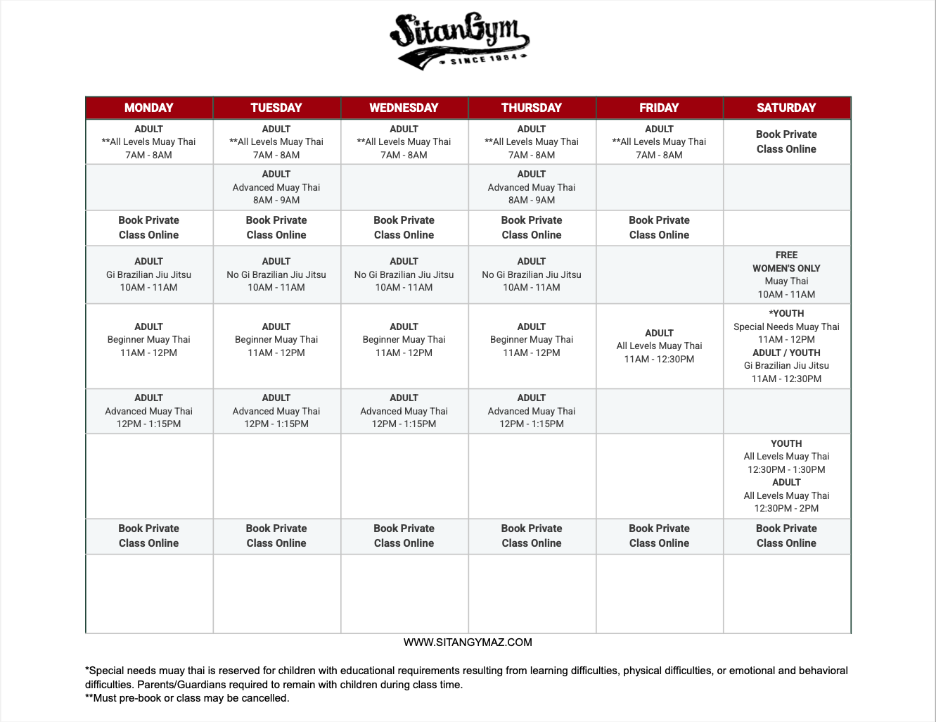 Sitan Gym will be adding to our BJJ schedule, starting October 1st. We hope to see you in! Let us know if you have any questions – the new classes are reflected on the schedule below and are as follows: